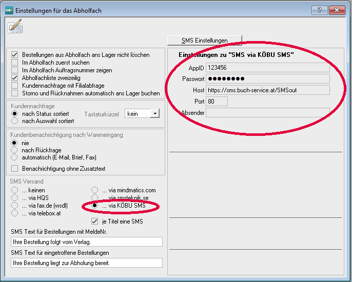 Anleitung hier als PDF: KÖBU SMS einrichten in BookHit und KÖBU-Win als PDF.